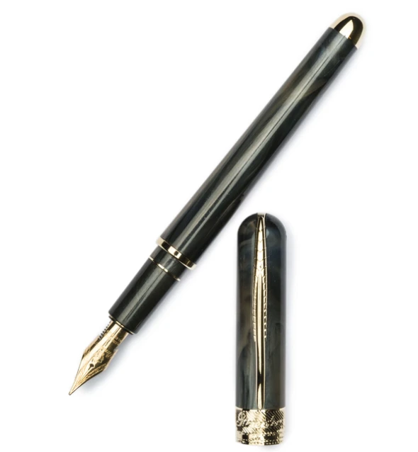 The Pineider Avatar UR Deluxe fountain pen has been made of a virtually indestructible UltraResin and a new glueless assembly. This Pen features gold trim and a 14K gold Quill Nib.